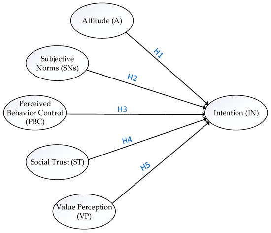The explanatory degree of TPB for individual specific behavior is limited, and the explanatory power can be enhanced by adding other factors [38,39]. The countryside is a society of acquaintances. Farmers’ trust in their relatives, neighbors, and village cadres affects their daily behavior [40]. In addition, rational farmers’ behavioral choices are usually value-oriented. Therefore, this study incorporates social trust and value perception into the TPB framework.