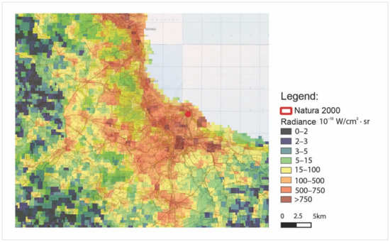 external illumination; sustainable urban lighting; artificial light at night; ALAN; anthropogenic light pollution; ecological light pollution; nighttime conservation; environmental protection; environmental pollution; bats; satellite remote sensing; light pollution regulations; Natura 2000; Myotis dasycneme; VIIRS; nighttime light observations; NTL; Black Marble; light pollution map; emissions control; COVID-19 1. Introduction