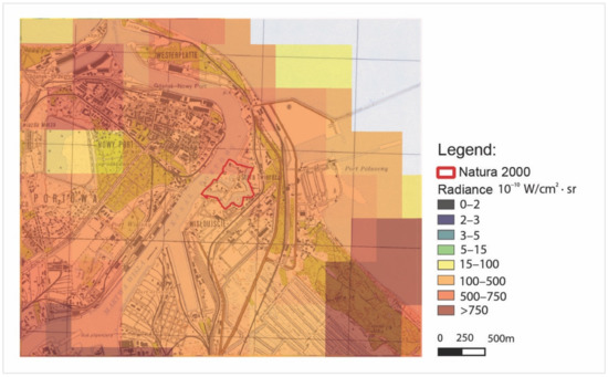- Question 3 (Q3). In recent years, a new tool in the form of remote sensing has been applied to assess the scale of light pollution. Is remote sensing data also appropriate to research the Natura 2000 site, located in the Wisłoujście Fortress?