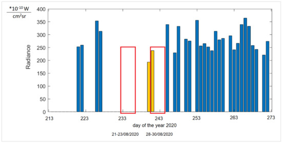 Data to be analysed must be converted from hdf to geotiff format. This allows analysis with the use of programs such as QGIS or MATLAB, which were used for this research. The file conversion was performed with the Python console using QGIS3.16 software. Each dataset was split and saved as a separate geotiff. The entire procedure was recommended on the following website https://blackmarble.gsfc.nasa.gov/Tools.html (accessed on 5 May 2021).