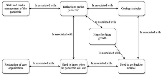 In this sense, as depicted in Figure 3, some participants reported positive strategies they implemented in order to cope with the pandemic, which led them to experience a state of well-being and to express hope for positive growth as an outcome of the situation. For example, Ilaria said: “In this period I have understood many things: the beauty of life, the desire to do things and change; I have rediscovered people in their fragility and inability to accept restrictions” [353:2]. Irene said: “Today I think I have gotten used to this new “modus operandi”, this way of living and working that is so different from what it used to be. Personally, I’m fine, and I’m strengthened by the thought that in the pandemic misfortune I was lucky: I did not get sick and neither did my family. We are all doing well, and this increases a sense of gratitude, courage and strength to keep going with passion and love” [63:3].