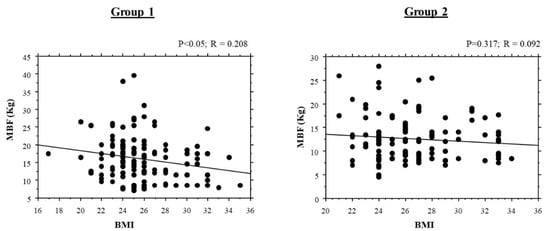 Correlation analysis of MBF values with age and BMI was performed with simple regression analysis. The level of statistical significance was set at p < 0.05. Statistical analysis was performed using the Statview software from SAS Institute.