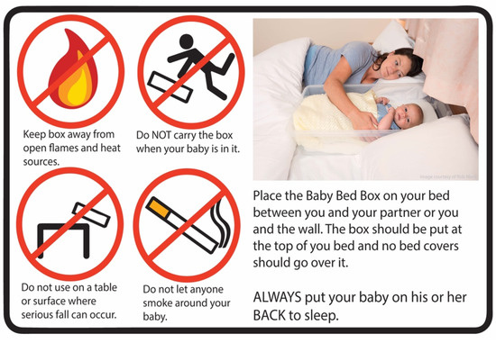 - Dalvie, N.; Nguyen, V.; Colson, E.; Loyal, J. Mothers’ perceptions of the cardboard box as a potential sleep space. Acad. Pediatr. 2019, 19, 787–792. [Google Scholar] [CrossRef]