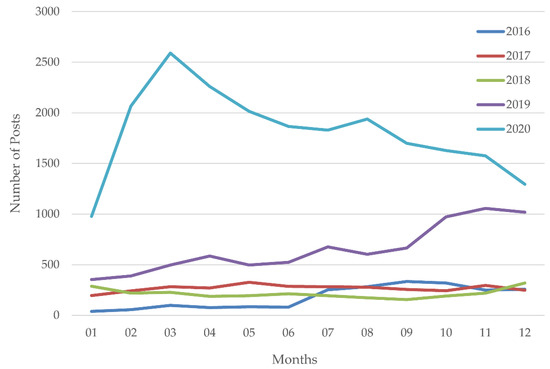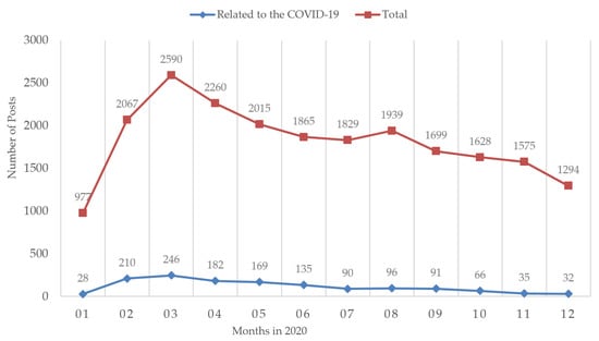 The monthly trends of the number of PHS posts during the COVID-19 pandemic.