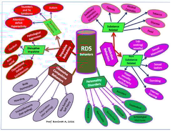 - Blum, K.; Gold, M.; Demetrovics, Z.; Archer, T.; Thanos, P.K.; Baron, D.; Badgaiyan, R.D. Substance use disorder a bio-directional subset of reward deficiency syndrome. Front Biosci. 2017, 22, 1534–1548. [Google Scholar] [CrossRef] [PubMed]