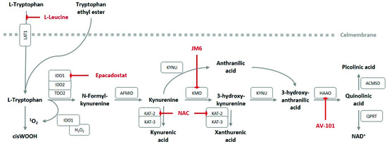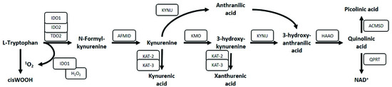 - Badawy, A.A.B. Kynurenine Pathway of Tryptophan Metabolism: Regulatory and Functional Aspects. Int. J. Tryptophan Res. 2017, 10, 1178646917691938. [Google Scholar] [CrossRef] [PubMed]