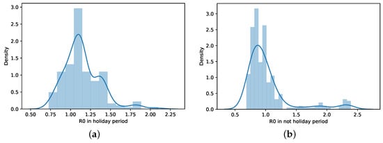 Histogram and distribution of R in holiday and non-holiday periods. (a) R distribution—holiday period. (b) R distribution—non-holiday period.