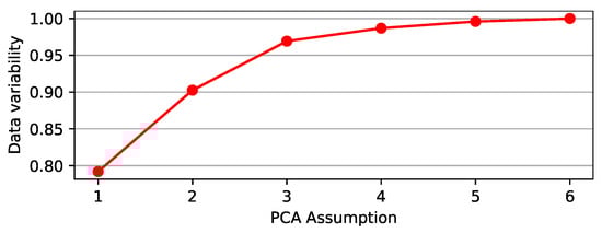 The PCA method reduces the number of dimensions in a scenario with multiple variables by using a linear transformation to turn a large number of correlated original variables into a smaller number of uncorrelated variables [22]. The newly discovered dimensions are smaller or equal in size to the original variables used in the algorithm [23].