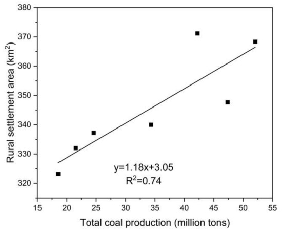 The relationship between total coal production and rural settlement land.