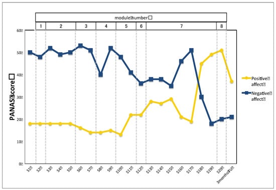 Figure 1 and Figure 2 show the time course of depression, anxiety, and positive and negative emotions. As shown in Figure 2, the client’s symptoms of depression and anxiety improved gradually after Module 5, where she practiced alternatives to avoidance and emotion-driven behaviors. Changes were observed in her anxiety and depressive symptoms and frequency of positive and negative emotions after the 17th session, when a solution was introduced to help her complete the homework of listening to an imaginal exposure recording. No severe adverse events were observed during treatment or follow-up. The client discontinued her medications due to side effects before the 10th session of the UP.
