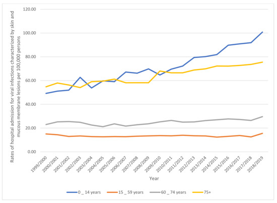 the United Kingdom; England; Wales; hospitalisation; admission rate; skin; mucous membrane; viral infections 1. Introduction