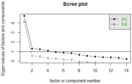 - Kaiser, H.F. The application of electronic computers to factor analysis. Educ. Psychol. Meas. 1960, 20, 141–151. [Google Scholar] [CrossRef]