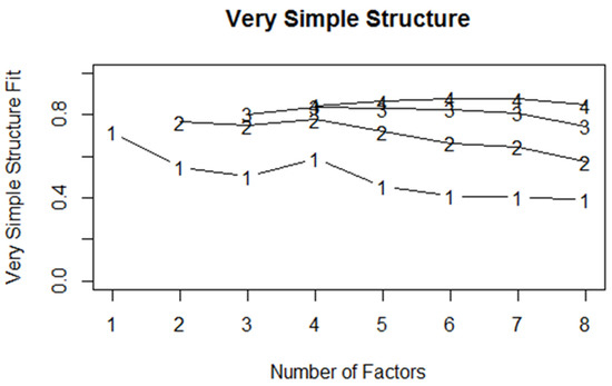 - Revelle, W.; Rocklin, T. Very simple structure: An alternative procedure for estimating the optimal number of interpretable factors. Multivar. Behav. Res. 1979, 14, 403–414. [Google Scholar] [CrossRef]