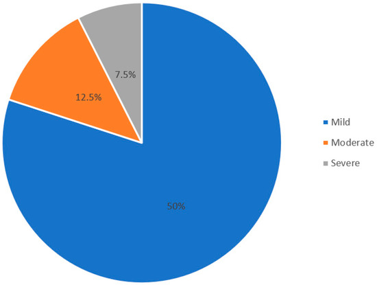 Table 2 shows the prevalence of depression. Depressive symptoms were detected in 27% of patients. Of them, 80% were classified as having mild depression, 12.5% as having moderate depression, and 7.5% as having severe depression (Figure 1).