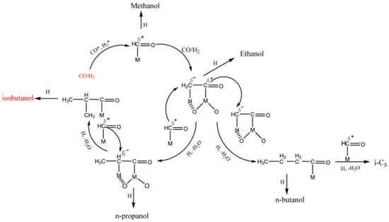 Reaction pathway for the formation of isobutanol from syngas. Reprinted from Wu et al. [82], Copyright (2014), with permission from Elsevier.