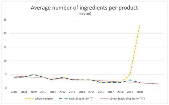 3.2. Average Number of Ingredients per Product