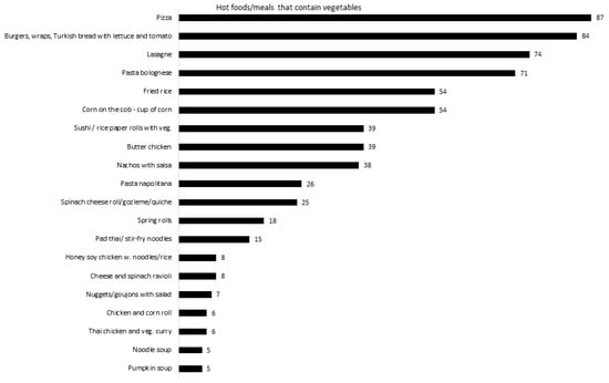 Hot foods/meals containing vegetables (the numbers represent the total number of menus that listed the item).