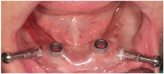 Immediate loading of two implants in overdentures by guided surgery, in edentulous mandibular patients, has been investigated in some clinical cases [,]. In these clinical situations was necessary high primary implant stability measured by resonance frequency analysis. Implant stability quotient values over 65, which was a prerequisite for the immediate loading, should be accomplished. Locator abutments were inserted on the implants and the metal housings were seated on the locators []. Another type of used retention system of overdentures was magnetic attachments [].