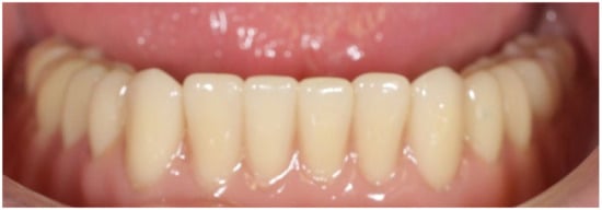 In the present study, based on the clinical and CBCT findings and the patient’s expectations, treatment planning was established to place two implants in the anterior mandible by using flapless surgery. Fourteen patients received 28 implants, inserted through a flapless guided surgery. No implants were lost, during the mean clinical follow-up of 44.7 ± 31.4 months. The cumulative implant survival rate was 100%. Flapless implant surgery is a minimally invasive surgical approach that has several important advantages for both the clinician and the patient [,]. Flapless guided implant surgery increases the ability to insert implants more precisely, specifically in fully edentulous cases, with an important reduction of surgery duration, better clinical conditions after surgery, and the possibility of placing restorations for immediate loading. Computer-guided dental implant systems also provide necessary information for the prosthetic evaluation of mandibular edentulous patients [,,,,,,].