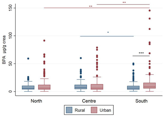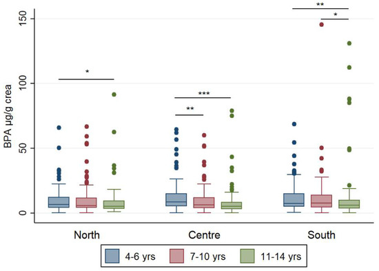 3.2. BPA Levels by Living Area, Sex and Age in Each Macro-Area