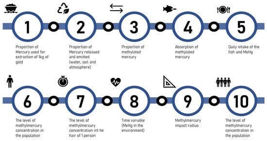 All of the logical links described above can be summarized as follows. It is possible to relate mercury use by gold mining and its respective loss in the environment until it reaches the human body and affects the population: