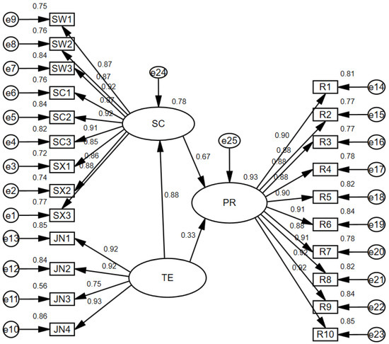 Structural model for PR. PR, Pandemic resilience; SC, Social Capital; TE, Technological of Empowerment.