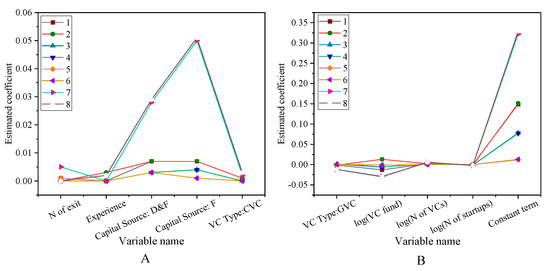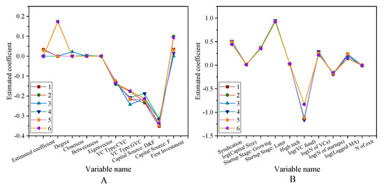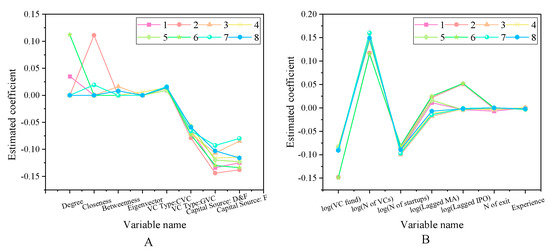 The impact of venture capital social network on successful exit rate (A) The first eight variables. (B) Other variables.