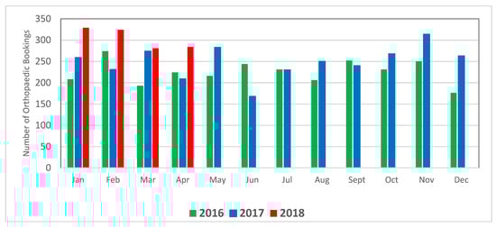 Number of orthopaedic surgeries scheduled for 2016, 2017, and 2018.