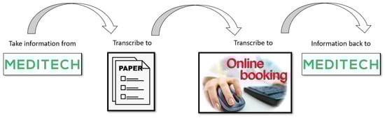Figure 5. Duplication of work. - Data that originated in the hospital electronic patient record (EPR) were transferred to a paper format, then to a hospital online scheduling system and finally back to MEDITECH (Figure 4).