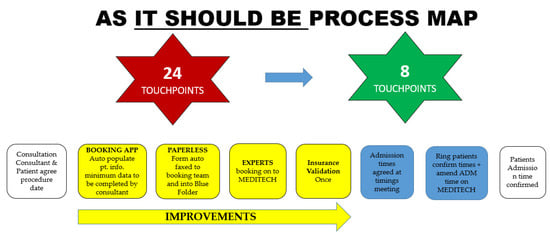 The leap to 24 touchpoints is reflective of a busy healthcare environment, where busy hospital staff work in departmental silos and do not see the entire service [,,]. Additionally, in healthcare, as in other industries, some workflows are designed while others evolve or develop organically []