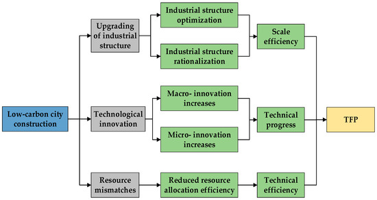 Mechanism of effects of low-carbon city construction (LCC) on the total factor productivity (TFP).