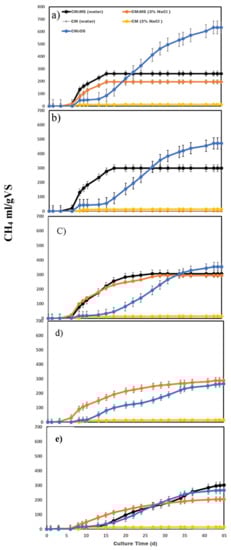 2.5. Effect of Inoculum Size and NaCl Supplementation on the Biomethanation of CM Using MS or OS as the Inoculum Source