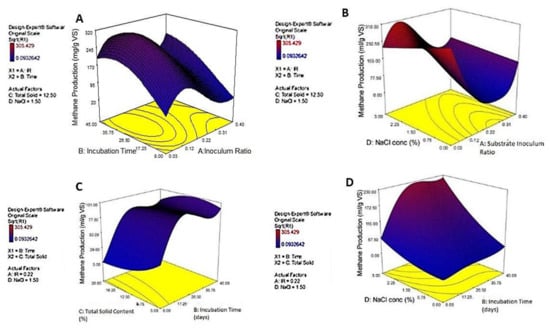 3.3. Optimization of CM Biomethanation Using MS as an Inoculum Source via the Design of Experiments and Statistical Modeling