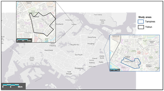 The household perception surveys were administered from July 2019 to February 2020, at two Project Wolbachia–Singapore study sites in Tampines and Yishun, where releases of male Wolbachia-Aedes mosquitoes are being carried out. Tampines and Yishun are located at the eastern and northern parts of Singapore respectively (Figure 1). The housing type and environment in both areas are similar, with apartments and commercial units developed by the Housing Development Board of Singapore.