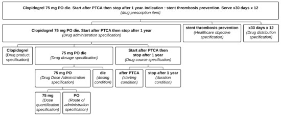 - Ethier, J.-F.; Taseen, R.; Lavoie, L.; Barton, A. Improving the Semantics of Drug Prescriptions with a Realist Ontology. In Proceedings of the International Conference on Biomedical Ontology and BioCreative (ICBO BioCreative 2016), Corvallis, OR, USA, 1–4 August 2016; Volume 1747. Available online: CEUR-ws.org (accessed on 30 September 2021).