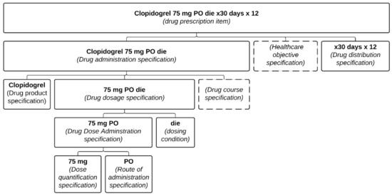A Drug prescription item also includes different specifications as defined below and organized as illustrated in Figure 1.