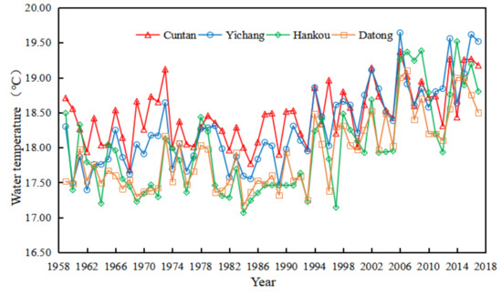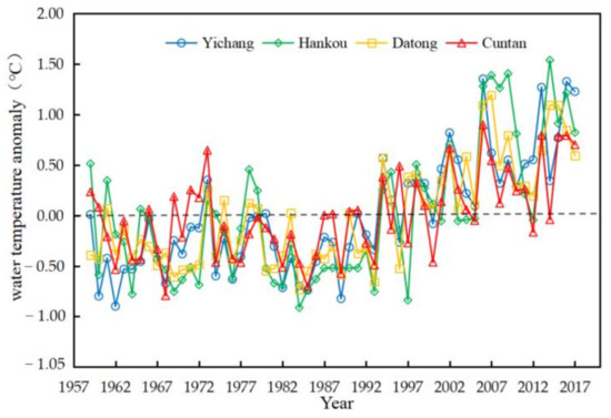 - Guo, W.; Xia, Z.; Wang, H.; Zhang, Y. Multiple scale analysis on water temperature variation of Yichang Hydrological Station in recent 50 years. J. Hydraul. Eng. 2008, 39, 1197–1203. [Google Scholar]