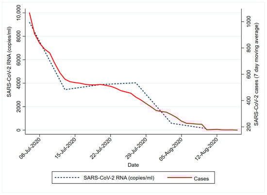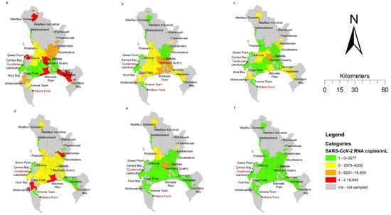 Street, R.; Mathee, A.; Mangwana, N.; Dias, S.; Sharma, J.R.; Ramharack, P.; Louw, J.; Reddy, T.; Brocker, L.; Surujlal-Naicker, S.; et al. Spatial and Temporal Trends of SARS-CoV-2 RNA from Wastewater Treatment Plants over 6 Weeks in Cape Town, South Africa. Int. J. Environ. Res. Public Health 2021, 18, 12085. https://doi.org/10.3390/ijerph182212085