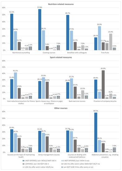 Evaluation of offer, desire, use, and benefit of twelve health promotion measures.
