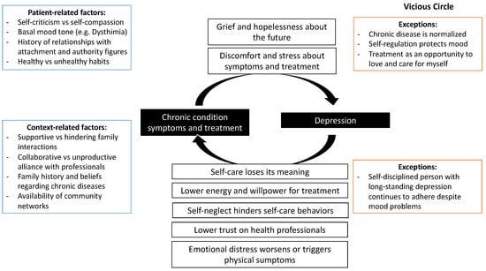 This vicious circle did not occur in all cases, as there were several exceptions in which the chronic condition did not worsen the patient’s mood, or the depression did not worsen the chronic condition.