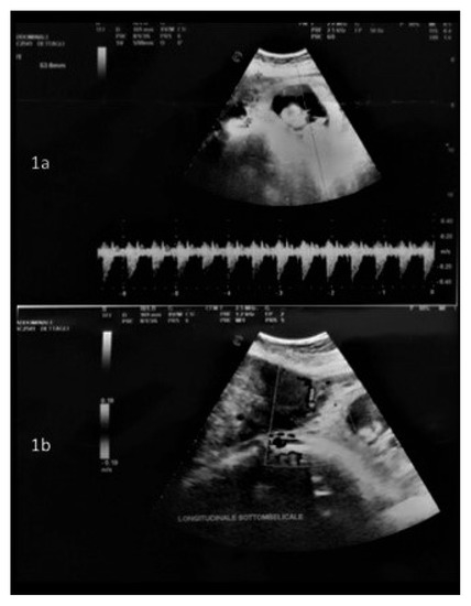 - Basso, A.; Catalano, M.R.; Loverro, G.; Nocera, S.; Di Naro, E.; Loverro, M.; Natrella, M.; Mastrolia, S.A. Uterine Fibroid Torsion during Pregnancy: A Case of Laparotomic Myomectomy at 18 Weeks’ Gestation with Systematic Review of the Literature. Case Rep. Obstet. Gynecol. 2017, 2017, 4970802. [Google Scholar] [CrossRef] [PubMed] [Green Version]