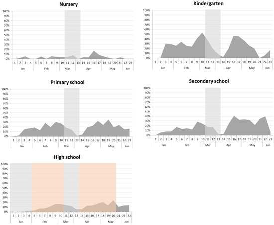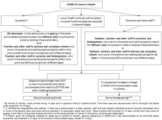 - Working Group Istituto Superiore di Sanità (ISS); Ministry of Health; Ministry of Education; INAIL; Foundation Bruno Kessler; Region Emilia-Romagna; Region Veneto. Indicazioni Operative per la Gestione di Casi e Focolai di SARS-CoV-2 Nelle Scuole e Nei Servizi Educativi Dell’infanzia. Operational Indications for the Management of SARS-CoV-2 Cases and Clusters in Schools and Childhood Education Services; ISS: Rome, Italy, 2020; Rapporto ISS COVID-19 n. 58/2020 Rev. Italian.