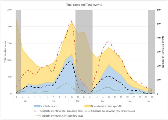 Tonon, M.; Da Re, F.; Zampieri, C.; Nicoletti, M.; Caberlotto, R.; De Siena, F.P.; Lattavo, G.; Minnicelli, A.; Zardetto, A.; Sforzi, B.; et al. Surveillance of Outbreaks of SARS-CoV-2 Infections at School in the Veneto Region: Methods and Results of the Public Health Response during the Second and Third Waves of the Pandemic between January and June 2021. Int. J. Environ. Res. Public Health 2021, 18, 12165. https://doi.org/10.3390/ijerph182212165