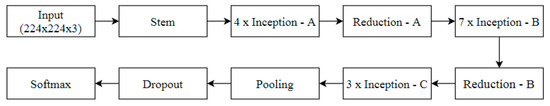 - Step 2: Training and ValidationThe training and validation process starts with dividing the images into an 80–20 ratio. This means the training phase contains 80% data and the testing phase contains 20% of data from the total. The Inception V4 produces features of the average pooling layer from the input image.