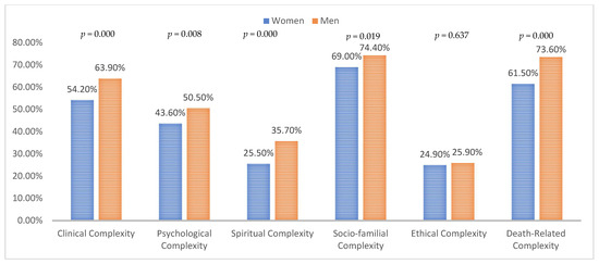 APA StyleBusquet-Duran, X., Moreno-Gabriel, E., Jiménez-Zafra, E. M., Tura-Poma, M., Bosch-DelaRosa, O., Moragas-Roca, A., Martin-Moreno, S., Martínez-Losada, E., Crespo-Ramírez, S., Lestón-Lado, L., Salamero-Tura, N., Llobera-Estrany, J., Salvago-Leiracha, A., López-García, A. I., Manresa-Domínguez, J. M., Morandi-Garde, T., Persentili-Viure, E. S., & Torán-Monserrat, P. (2021). Gender and Observed Complexity in Palliative Home Care: A Prospective Multicentre Study Using the HexCom Model. International Journal of Environmental Research and Public Health, 18(23), 12307. https://doi.org/10.3390/ijerph182312307