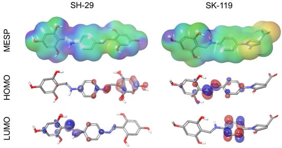 Representation of HOMO, LUMO, and MESP on compound SH-29 and compound SK-119.