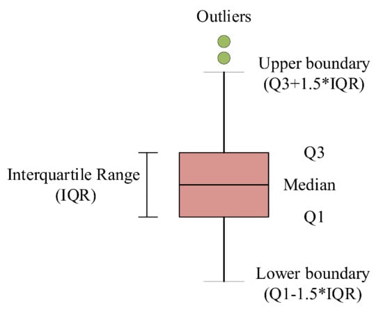 - Schwertman, N.C.; Owens, M.A.; Adnan, R. A simple more general boxplot method for identifying outliers. Comput. Stat. Data Anal. 2004, 47, 165–174. [Google Scholar] [CrossRef]