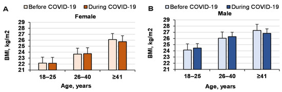 Figure 4. Changes in BMI before and during COVID-19 for men and women of different ages.