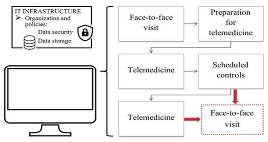 The COVID-19 pandemic and the need to provide alternative ways for the in-person visit has led to the creation of a wide range of information technology (IT) infrastructures. On the market, there are systems which have different complexities (and costs). In general terms, the platforms consist of an operating system for the management of the whole service, devices (e.g., laptops), and an integrated software system (software modules) for sending documents, reports, and imaging. In brief, the IT infrastructure must allow all organizational phases (reservations, contacts, links for connection, and data collection) and guarantee data security and privacy.