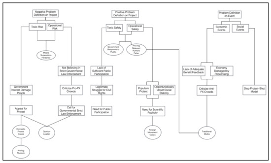 Previous studies on internet-based environmental protest events mostly started from a single case and analyzed the process mechanism of the event, such as resource mobilization, framework integration and opinion leaders [9,10]. Meanwhile, when PX projects in different cities were trapped in the cycle of ‘stop, suspend or move as long as they protest’, the cognition and views of Chinese internet public opinion on the project are not identical [11]. The leading public opinion of the project has gradually expanded from the ‘carcinogenic’ and ‘highly toxic’ at the early stage to the discussion on its ‘low toxicity’ and ‘safety’ and also from the attribute of PX itself as a chemical to the risk and safety issues of the plants’ site selection. Through the virtual ethnography analysis of the ‘PX entry Battle’ in Maoming, some scholars argue that the internet public opinion has changed from ‘polarization’ to ‘rationalization’ [12]. However, when exploring the relationship between media orientation and public reading behavior in Chinese internet news, some researchers use the selective spiral theory to explain the public opinion cycle of the internet and find that the behavior of public receiving, reading and forwarding news presents the feature of ‘selectivity’ [13]. In such a spiral, the propagation influence of a certain coordinate will be continuously stimulated and amplified due to the different biases of people’s information selection, and even the phenomenon of polarization will occur.